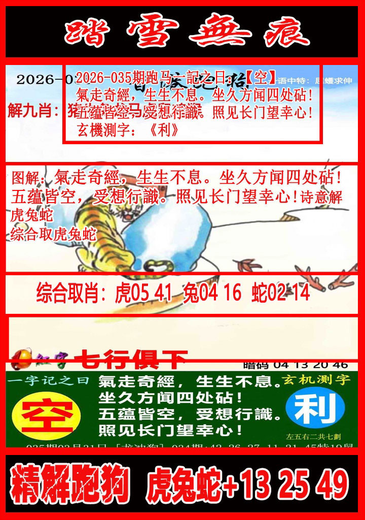 035期:【通天大道】━━━【解析跑狗玄机】━━━个人心水分析!