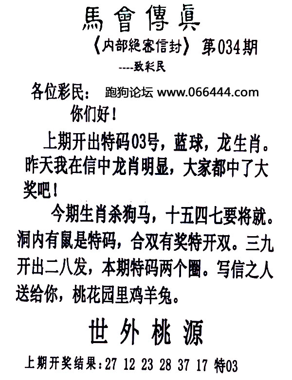 034期:必中二肖 |